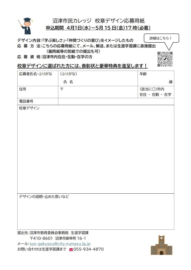 沼津市民カレッジ 校章デザインを募集します!