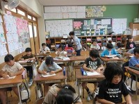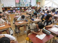 漢字テストに取り組んでいます。みんなとても集中していて、鉛筆の音が静かに聞こえてきました。