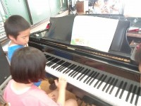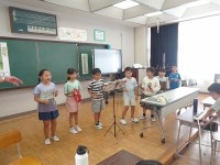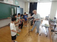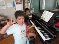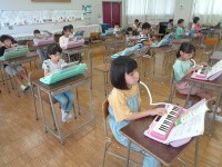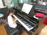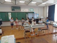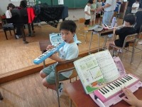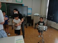 打楽器を使いながら、みんなで音楽を楽しんでいます。リズムに合わせてみんなで演奏していました。