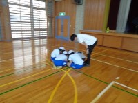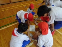 はばたき祭で行う、組み体操の並び方などの確認を行っています。