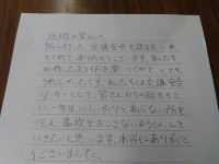 「交通安全を語る会」に参加してくださった方々へお礼の手紙を書いています。