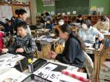 6年2組の書写の時間は、毛筆で一人一人が好きな漢字を選んで書きました。