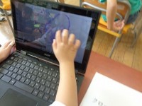 その後、全員に渡した後、クロームブックの開き方やパスワードの入れ方を確認し、おえかきアプリで絵をかいていきました。