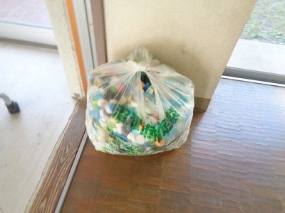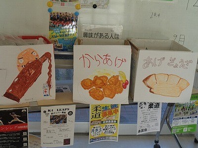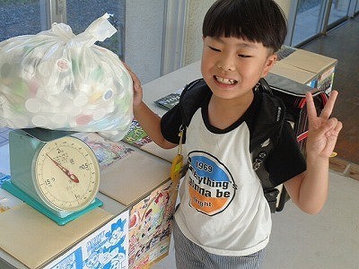 計画委員さんが、エコキャップ運動を行っています。食べたい給食3つをアンケートで選び、さらに、その中から一つを、エコキャップを入れながら決めていきます。