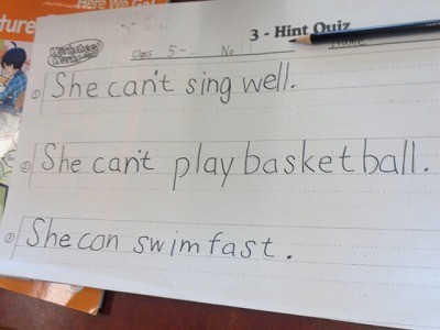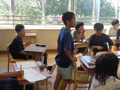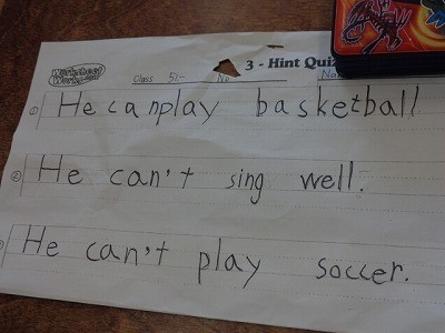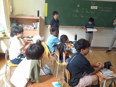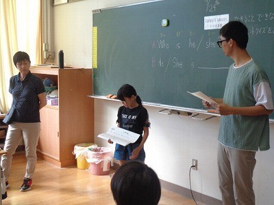 3つの英文から、誰のことをいっているのか、クイズを行っています。とても盛り上がっていました。