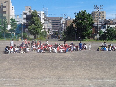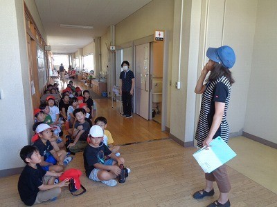 昼休みに避難訓練を行いました。今回はn突発地震が起きたことを想定しています。昼休みに遊んでいるとき、突然放送が入り、地震が起きたことを知らせていきました。子供たちは、落ち着いて、グラウンドの中心にあつまったち、机の下に隠れるなどして、身の安全を確保していきました。