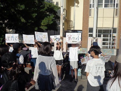 スローガン発表では、みんなでスローガンを大きな声で合唱していきました。