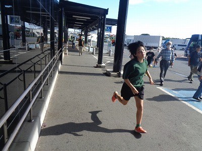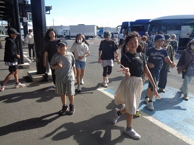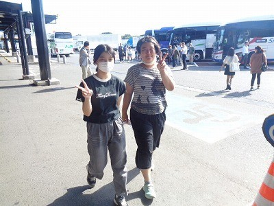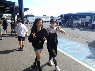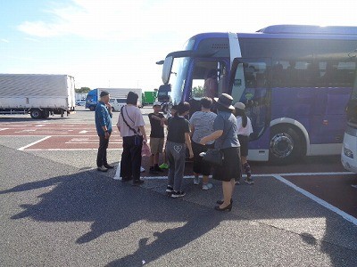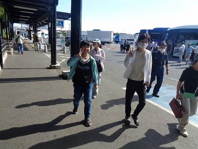 海老名サービスエリアに到着しました。この先の渋滞にそなえ、みんなトイレをすませました。