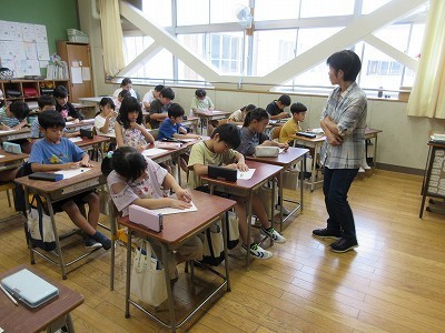 漢字テストに取り組んでいます。みんなとても集中していて、鉛筆の音が静かに聞こえてきました。