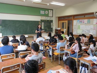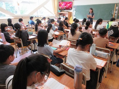 俳句の学習です。俳句はどんなものなのか、教科書を読んで確認していました。みんな集中して聴いています。