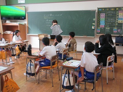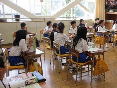 これからはじまるランチョンマット作りについて、説明を聴いています。ミシンの学習がいよいよ本格的に始まります。どんな作品になるか、楽しみですね。