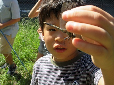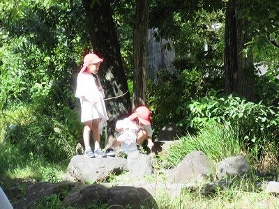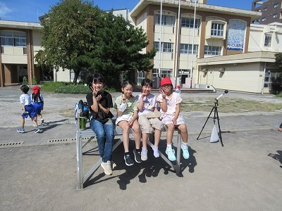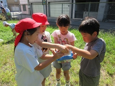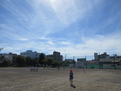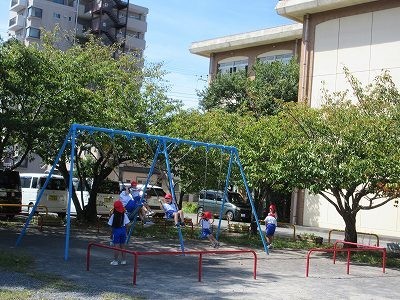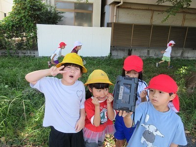 気持ちのよい秋晴れのもと、外へ出て遊んでいます。虫を捕まえたり、運動したり、秋を満喫しています。みんな素敵な笑顔です。