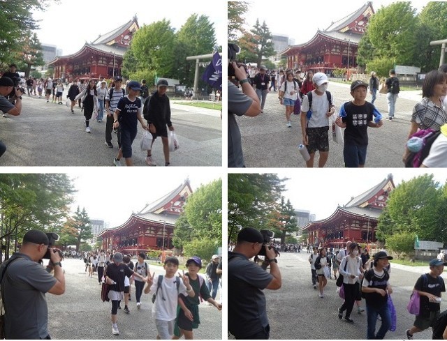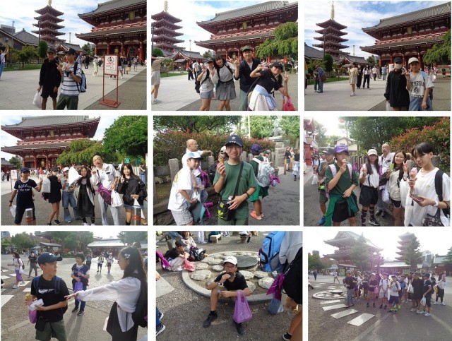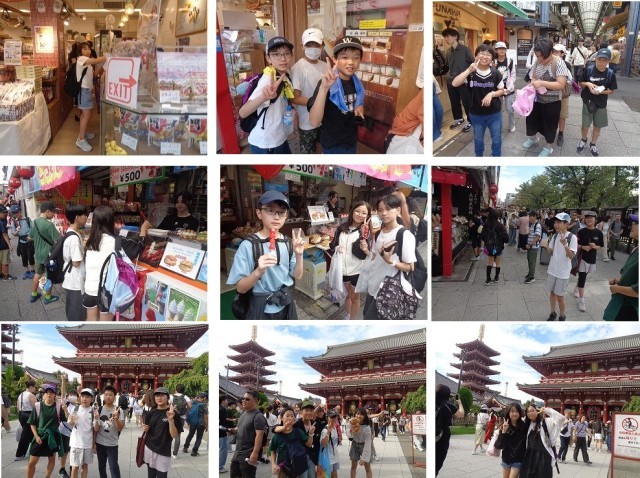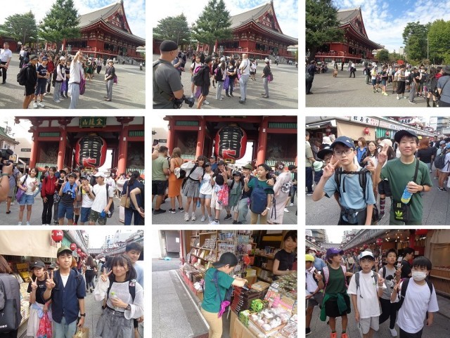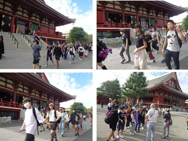 浅草では、雷門の前で、記念写真を撮った後、グループで行動しました。飲み物やおだんご、人形焼きなどおいしくいただきました。