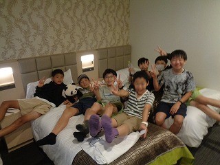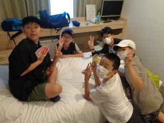 朝食を食べて、部屋の片付けをしたあとの時間、みんなで遊んでいます。