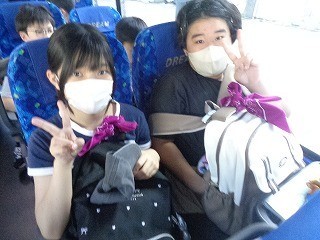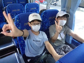 バスに乗り込んで出発です。急派どんな楽しいことがあるか、ワクワクしています。