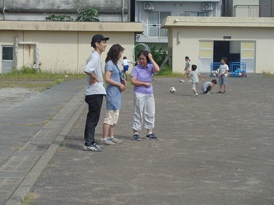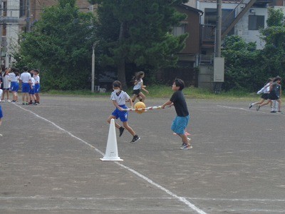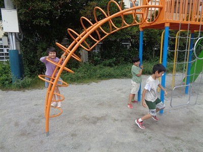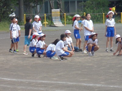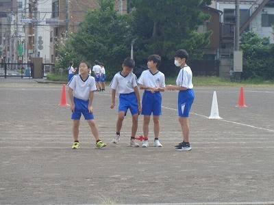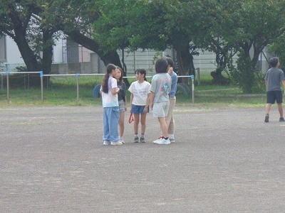 サンタイムのようすです。湿度が80%あり、蒸し暑い中ですが、子供たちは「はばたき祭」の練習などをしています。