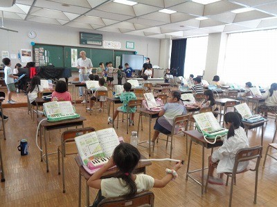 打楽器を使いながら、みんなで音楽を楽しんでいます。リズムに合わせてみんなで演奏していました。