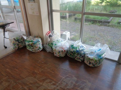 計画委員さんがエコキャップ給食を行っています。みんな積極的に協力しています。