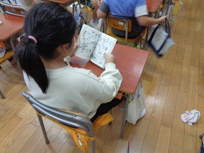 登校して教室に入ると、鞄の中身を整理し、読書を行っています。