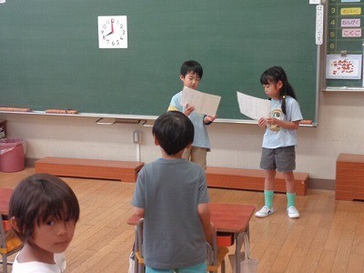 読書が終わると、朝の会です。当番さんが中心となって行っています。