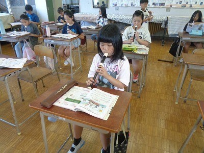 「陽気な船長」という曲をリコーダーで演奏しています。