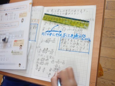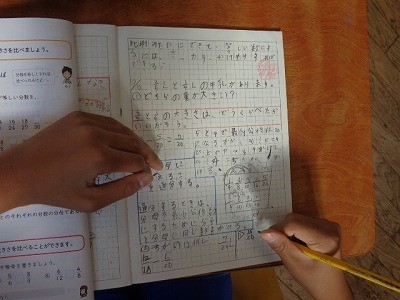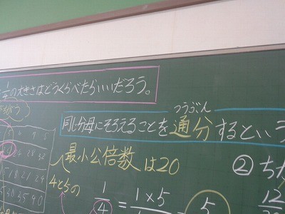 分母の違う2つの分数の大きさをくらべるためにはどうしたらいいか考えています。