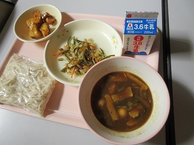 です。今日は「大学芋」について紹介します。大学芋は、油で揚げたさつまいもに蜜をからめた料理のことです。大学芋の名前の由来はいろいろあります。昭和の初めは不況で、大学生の中にもお金に困っている人がたくさんいました。そこで、大学生が作って売っていた,大学の門の前で売っていた、などさまざまな言い伝えがあります。秋を感じる献立でおいしかったです。ごちそうさまでした。