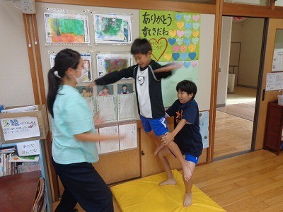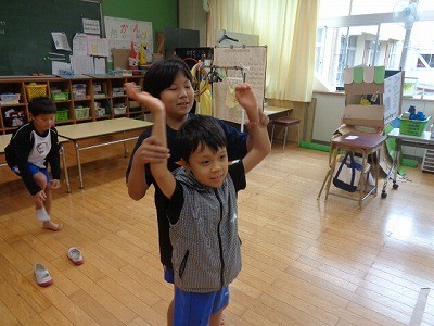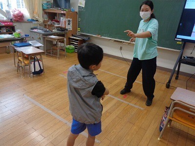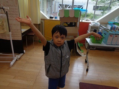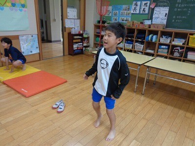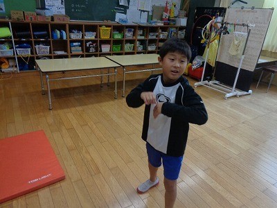 朝の体操を行っていました。