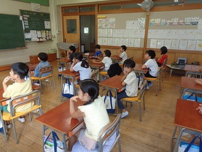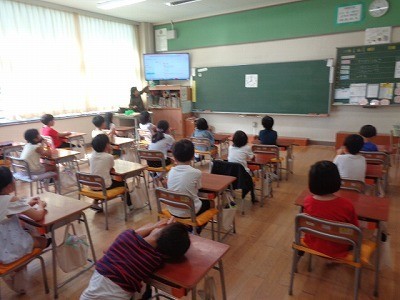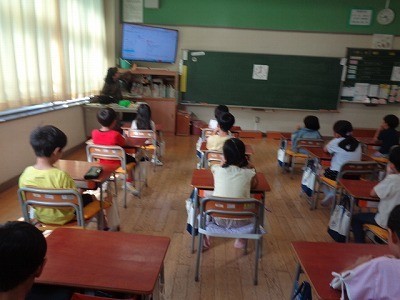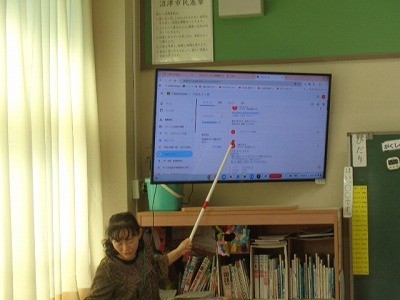 クロームブックや大画面を使って、今日の日程の確認をしています。