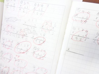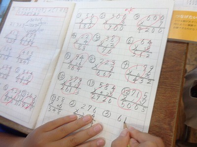 授業のはじめに、前回の学習の計算問題を解いています。