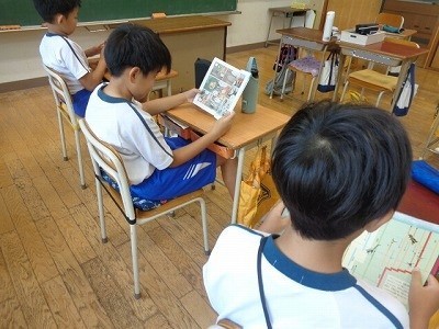 登校して教室に入ると、読書が始まります。みんな集中して本を読んでいます。