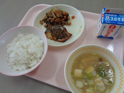 今日は、「五目煮豆」について紹介します。今日の五目煮豆は、乾燥大豆を使いました。大豆は中国から伝わってから2000年、日本ではたくさんの加工品が生まれました。大豆から作られた食品は、「豆腐」「納豆」「油揚げ」「ゆば」「みそ」「しょうゆ」など、どれも和食には欠かせないものです。「大豆」という名前は、「大切な豆」という意味が込められています。