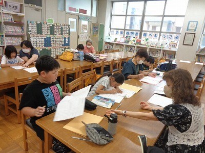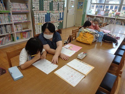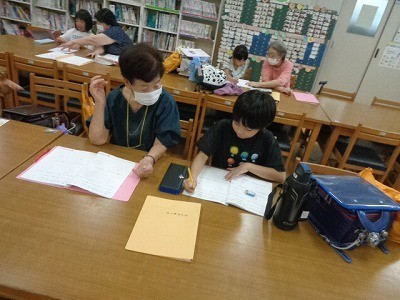 はばたき教室のようすでう。ボランティアさんたちが、丁寧に子供たちに算数を教えてくださっています。子供たちも真剣に取り組んでいます。