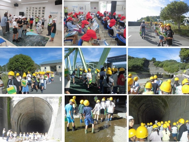 狩野川資料館に到着すると、放水路の中に入っていきました。とても大きいトンネルになっていました。