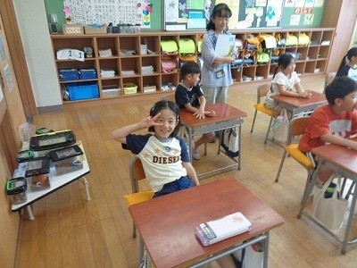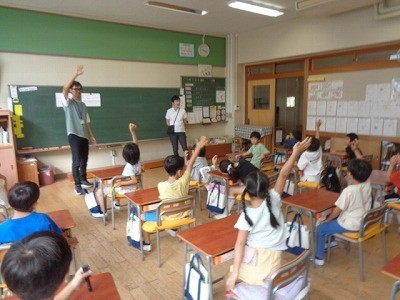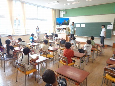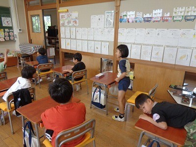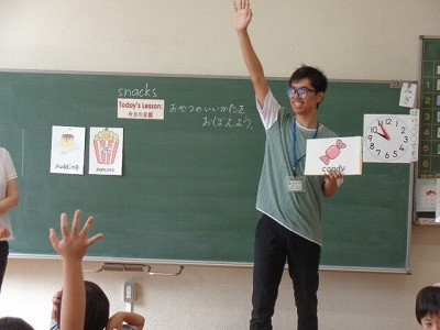 名前の聞き方や答え方の練習をしたあと、お菓子について、英語で何というのか確認しています。
