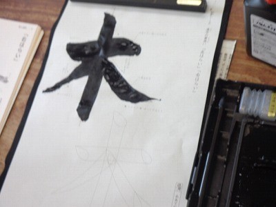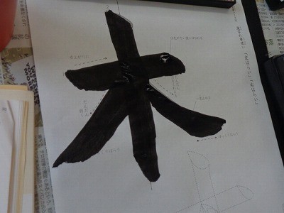 「木」という字を書いています。