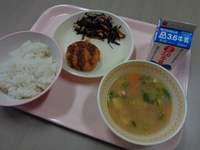 ひじきとニンジン、大豆が入っていて、食感もよくおいしかったです。ごちそうさまでした。