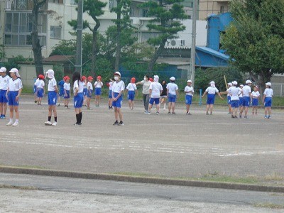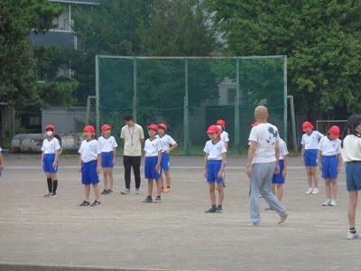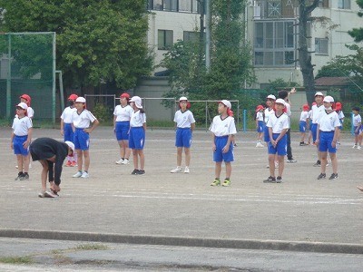 はばたき祭の練習です。組み体操を行うための立ち位置などを確認しています。