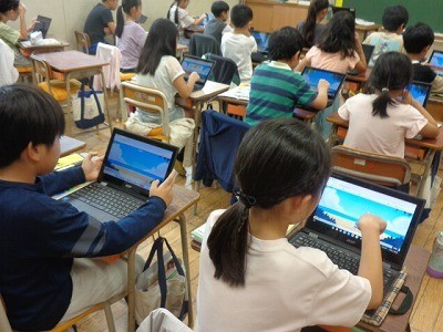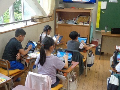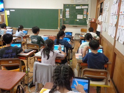 今までの学習の振り返りを、クロームブックを使って行っています。