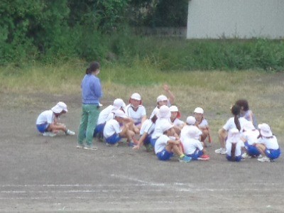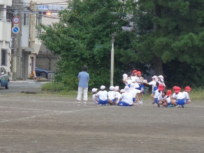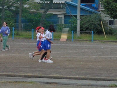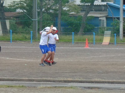5年生が合同体育を行っています。二人三脚の練習を行っていました。だんだん息が合ってきましたね。