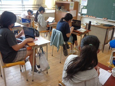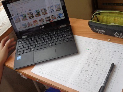 クロームブックをつかったり、直接原稿用紙に書いたり、自分のやりやすい方法でかいていました。