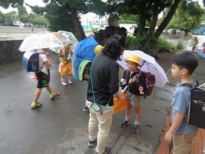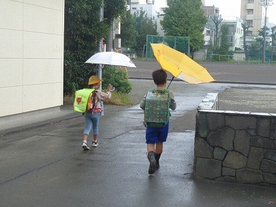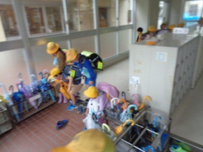 小雨が降る中でしたが、元気に下校していきました。