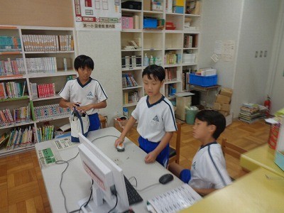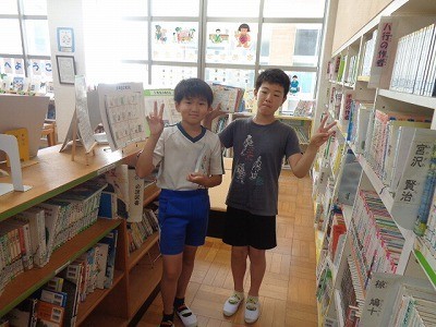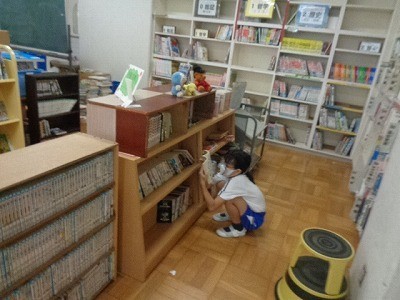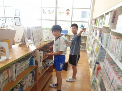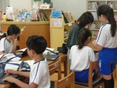 図書館で本を借りています。この土日によむ本を探していました。