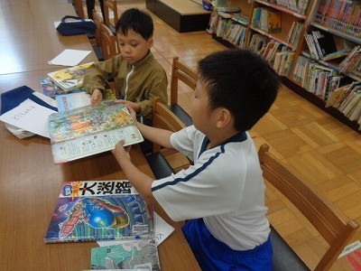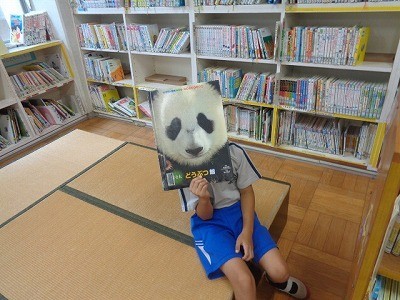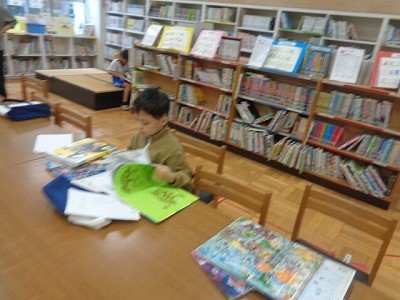 図書館で本をかりて、よんでいました。