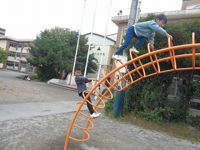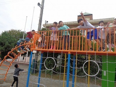 昼休みには雨もやんだため、子供たちは元気に遊んでいます。