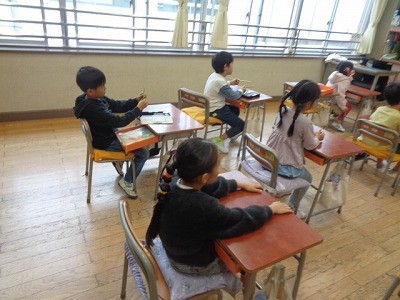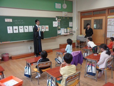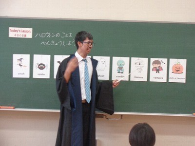 ハロウィンに関係する英語をならっています。みんな楽しく英語に触れています。