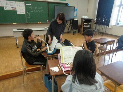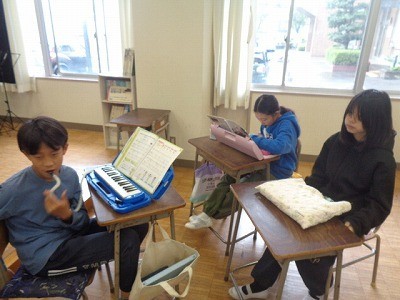 それぞれ、和音を担当し、自分の場所で吹くというように、分担しながら演奏していました。