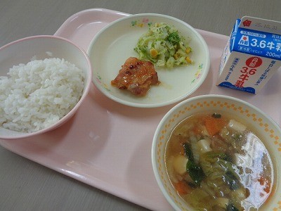 キャベツやコーンと一緒に炒めてあって、洋風だしがきいていておいしかったです。ごちそうさまでした。