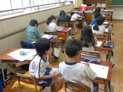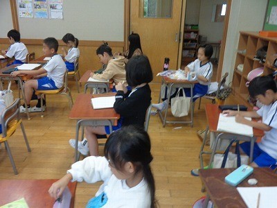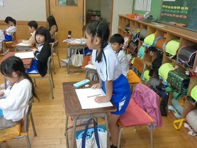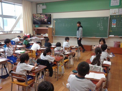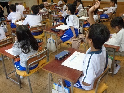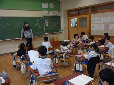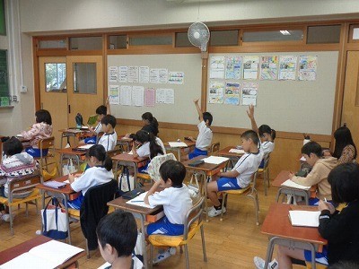 かけ算の九九の勉強をしています。積極的に発表しています。