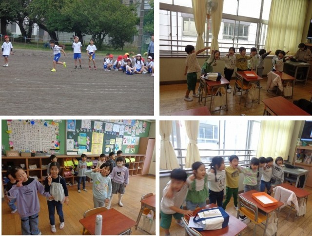 1年・2年・5組合同でダンスの練習をしたあと、1年生は応援練習、2年生・5組は個走の練習をしました。明日に向かってがんばっています。
